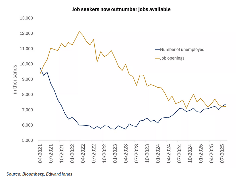 Job openings just fell below the number of unemployed workers for the first time since 2021. That means musical chairs where someone's always left standing. Companies aren't hiring because of macroeconomic uncertainty, expected AI productivity gains, or both. Either way, workers lost their bargaining power.