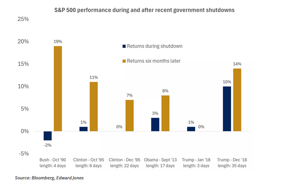 S&P 500 performance during and after U.S. government shutdowns since 1990