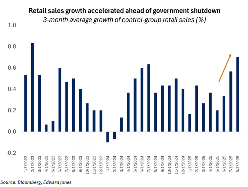 Retail sales growth accelerated ahead of the U.S. government shutdown